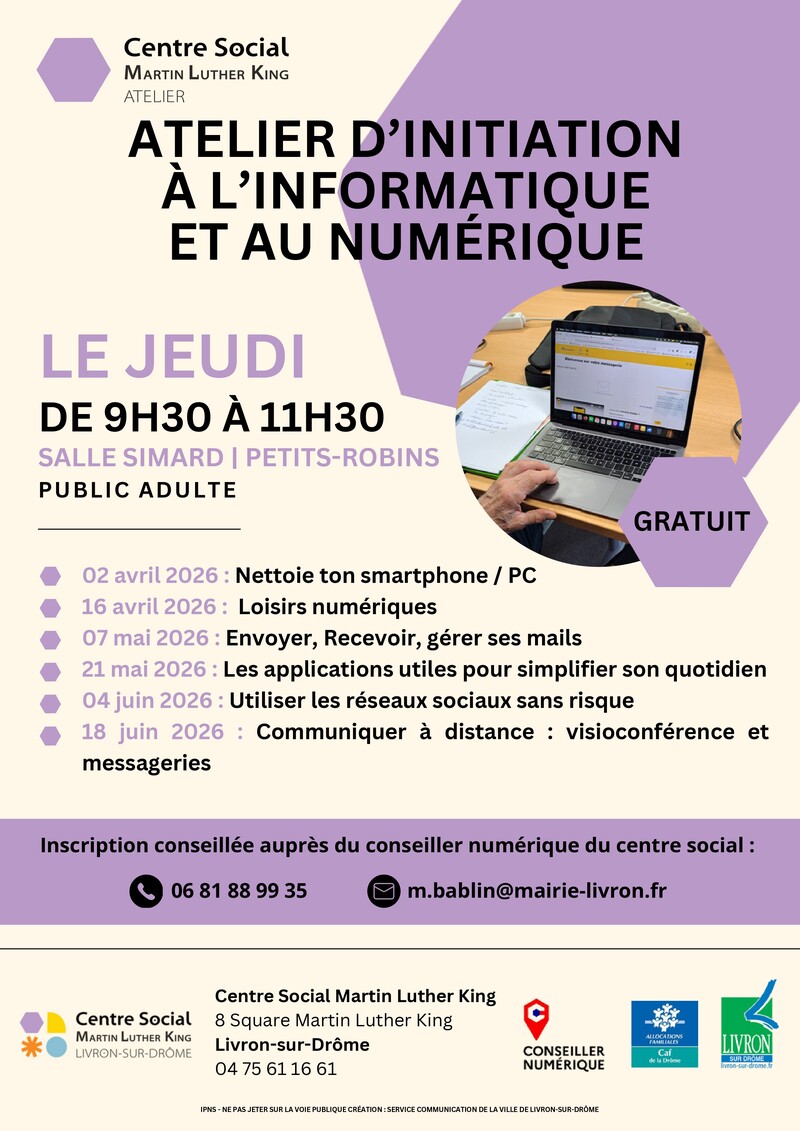 - Jeudi 21 mai 2026 | Les applications utiles pour simplifier son quotidien : découvrir des applications pratiques pour gagner du temps et faciliter ces démarches.