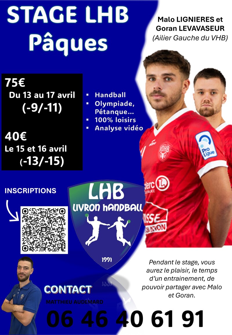 Le club Livron Handball organise un stage de handball qui se déroulera du lundi 13 avril au vendredi 17 avril, hors mercredi, au gymnase Claude Bon à Livron-sur-Drôme.