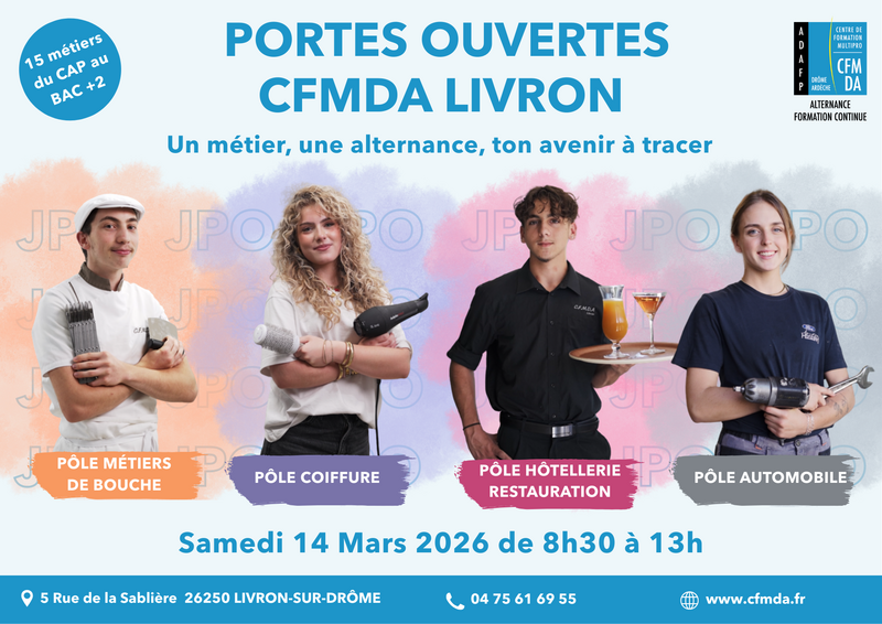 Le Centre de Formation Multipro Drôme - Ardèche (CFMDA) vous invite à venir découvrir les formations proposées au cours de ses portes ouvertes.